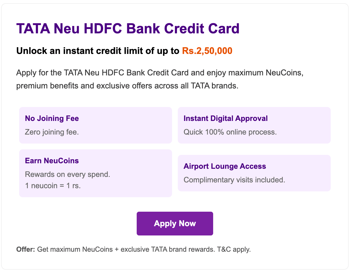 You have received this email because you hold an Tata Neu HDFC Bank Credit Card or have opted to receive updates.